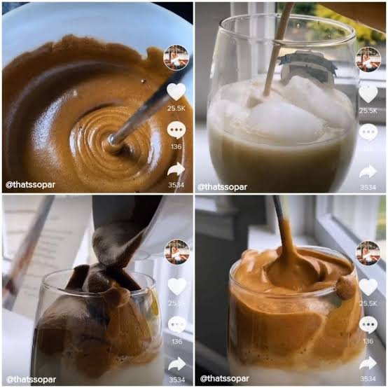 Siapa yang gatau sih resep ini? Yaps resep ini lagi viral lho di dunia pertiktokan, udah ga asing lagi minuman ini banyak buat di aplikasi tersebut, bahannya juga tidak sulit ditemukan ko cuma butuh 3 elements penting saja untuk membuat dalgona coffenya dan sangat menggoda bagi para pencinta kopi pastinya. Yu simak resepnya!